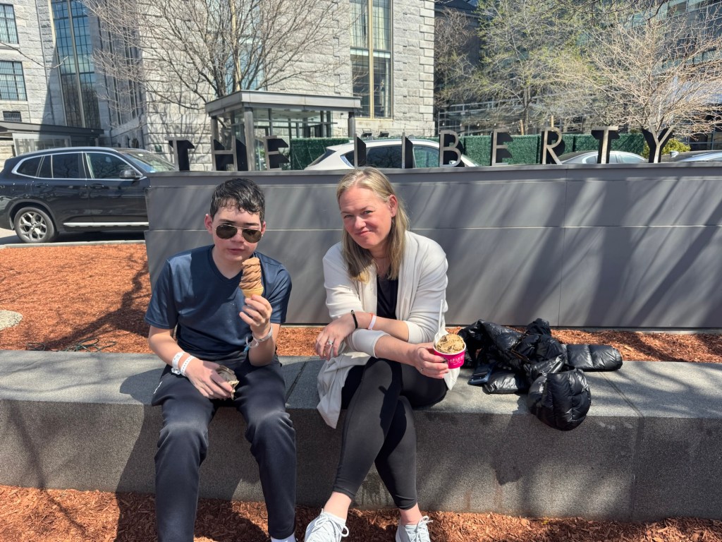 The rules require that patients stay on-campus. But JP Licks (ice cream) was just across the street! We tried to convince him, but Chase would have none of it. He’s serious about his recovery apparently. Dad had to run across the street.