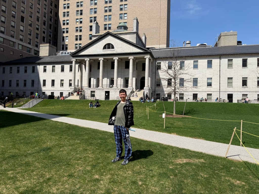Many visitors today. When one group left, Chase escorted them to the garage and stopped for a picture in front of the the MGH original building. On the way back to his room he stopped in the gift shop and picked up an official Massachusetts General Hospital zip-up sweat-shirt. He had to get one as he’s declared that he’s going to become an ophthalmologist…